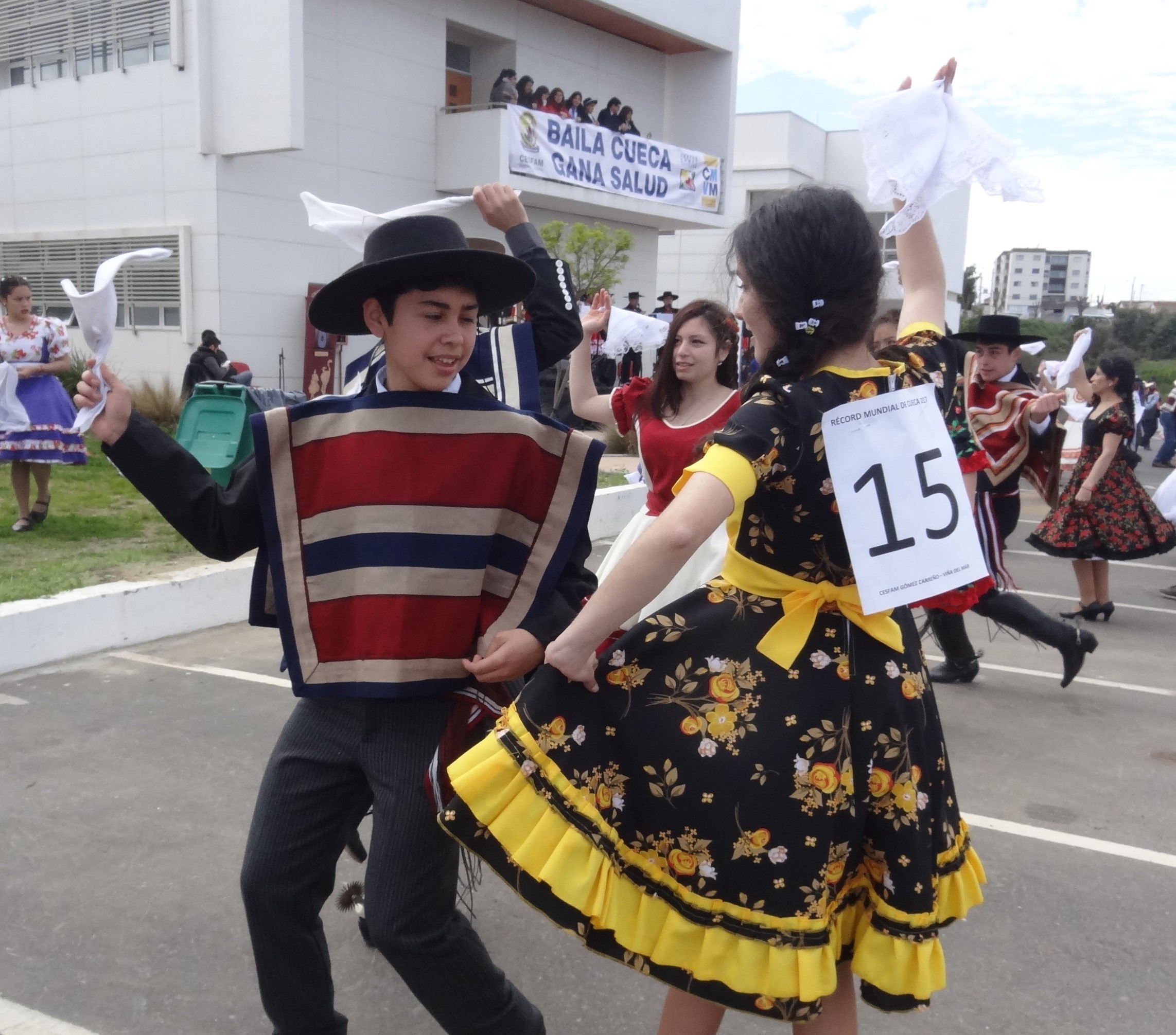 Parejas de todas las edades hicieron gala de su destreza para el baile. Entre los participantes estaba Tamara Roa y Matías Molina, ambos de 14 años, alumnos de 1° medio del Liceo San Antonio. A parte de ser el baile nacional, es bonito y divertido, dijo Matías.
