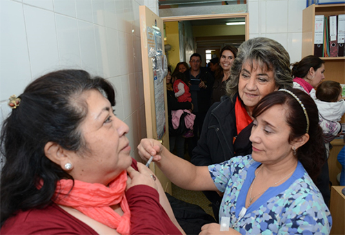 La jefa comunal encabezó la jornada de vacunación acompaña por la directora del Área de Salud de la Corporación Municipal de Viña del Mar, Alejandra Cortés, y la directora del Cesfam M. Maldonado, Ruth Rogers, ocasión en la cual las autoridades hicieron un llamado a la población a tomar conciencia de la importancia de vacunarse a tiempo contra la influenza, como medida preventiva ante el brote de este virus.